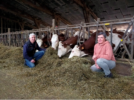 Le GAEC familial est aujourd’hui spécialisé en production laitière avec un troupeau de 40 vaches de race Montbéliarde. L’exploitation s’étend sur 135 hectares, majoritairement composés de prairies, complétés par quelques hectares de céréales et de lentilles.